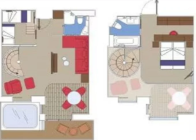 | YJD - Yacht Club Duplex Suite s vírivkou 46 m² + balkón 30 m². Vírivka. 2 podlažia, šatník, 2 kúpeľne (1 s vaňou). Max 4 osoby. 16. paluba. Cenový model MSC Yacht Club. Easy package v cene | 8 242 € 4 121 € za osobu | ||