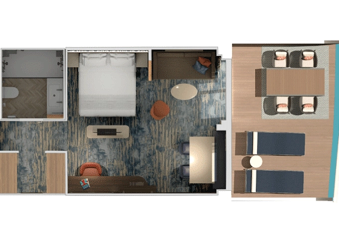 | HU - Suite Havana Cabana Corner 33 m² + vonkajšie rohové patio 15 m². 8. paluba vpredu. Max 3 osoby. Tropický štýl, vstup do exkluzívnej zóny Havana. Výhody Suite. | 5 050 € 2 525 € za osobu | ||