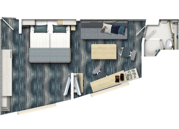 | JBAO - Junior Suite s balkónom 26 m² + balkón 7 m² so stolom. 10,11. paluba. Max 4 osoby. Výhody Junior Suite. | 18 747 € 6 249 € za osobu | ||