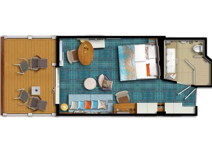 | BAGO - Kajuta s balkónom kat. G 17 m² + balkón s obmedzeným výhľadom 5 m². 6. paluba. Max 4 osoby. | 6 028 € 3 014 € za osobu | ||