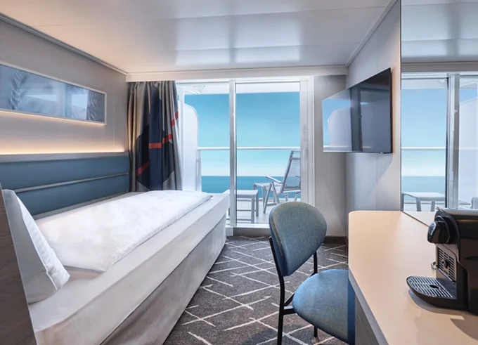 | SKAO - Schöne Aussicht Suite 39 m² + balkón 10-12 m² s ležadlami a hojdacou sieťou. 7-14. paluba. Max 4 osoby. Výhody Suite. | 13 496 € 3 374 € za osobu | ||
