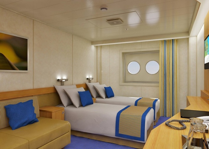 4J - Vnútorná kajuta s oknom / obmedzený výhľad od 17 m². Neotvárateľné okno / obmedzený výhľad. 3,6,7. paluba. 2 242 € 1 121 € za osobu