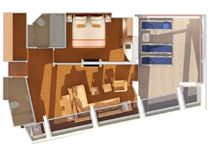 GS - Grand Suite 32 m² + balkón 8 m². 7. paluba stred. Výhody Suite. 6 378 € 3 189 € za osobu